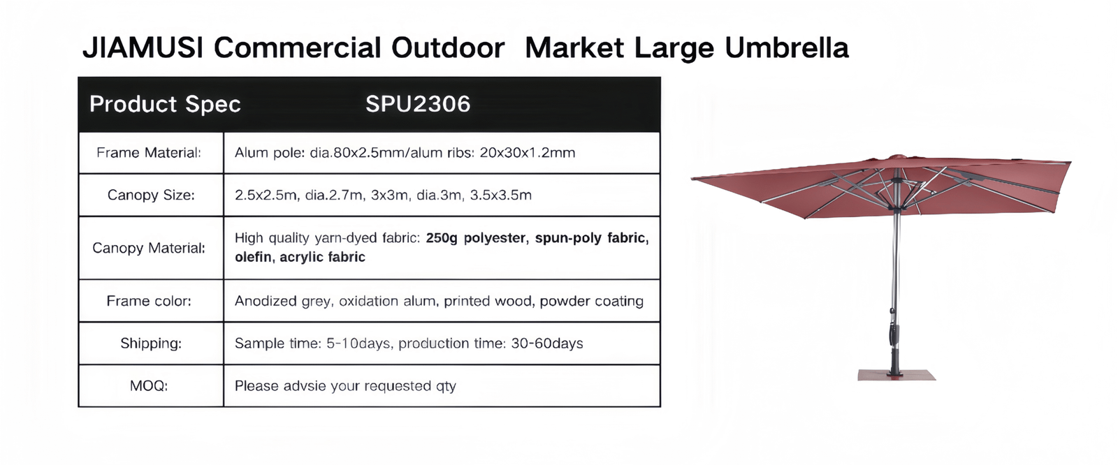 JIAMUSI Commercial Outdoor Market Large Umbrella